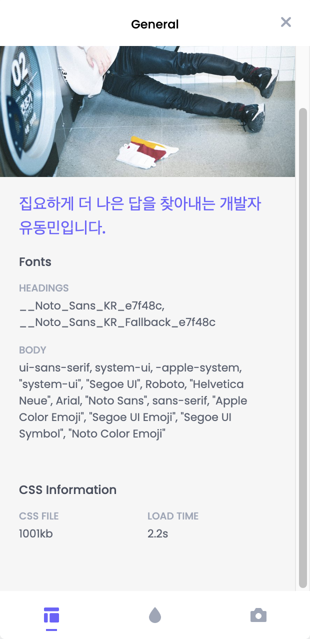 제 페이지의 App.tsx입니다. Noto Sans KR 폰트를 사용했습니다.