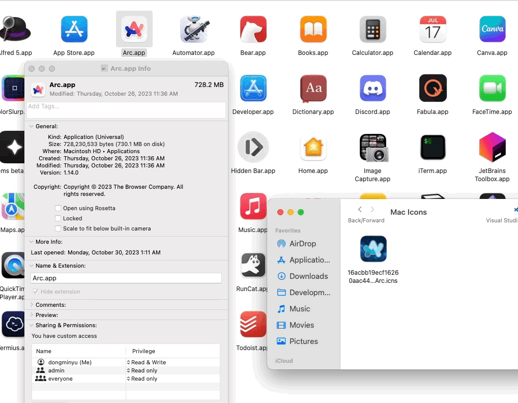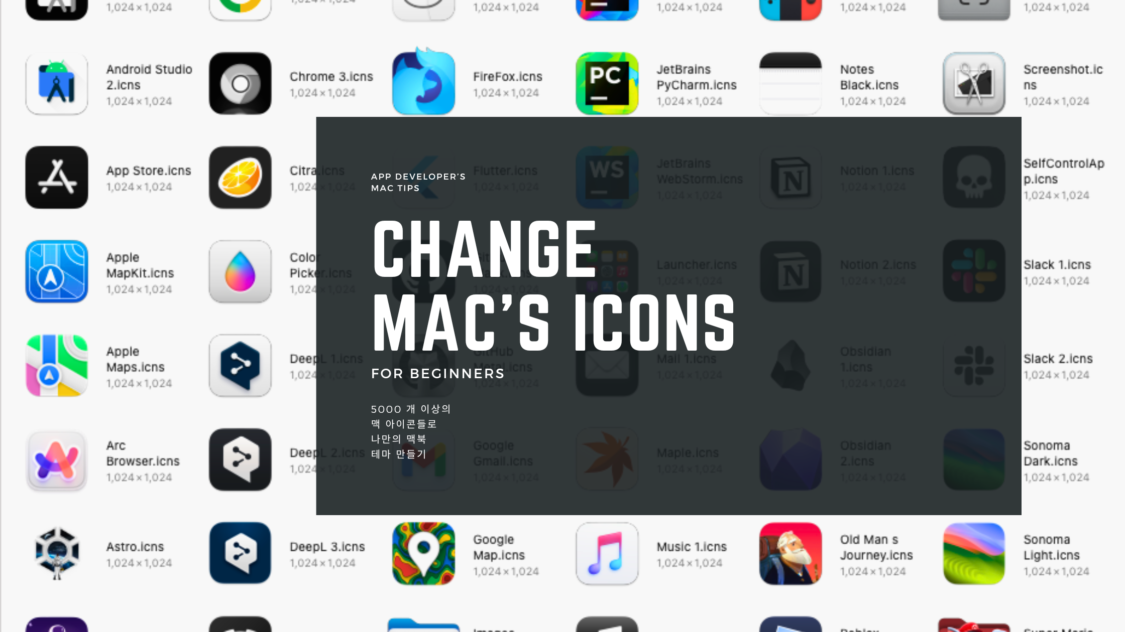 혹시 아이콘 변경이 잘 되지 않는 경우, 애플의 시스템 앱 (앱스토어, 설정, 사파리 등)은 이러한 접근 (내부적으로 앱의 Contents/Resources/AppIcons.icns 파일을 새 파일로 변경하는 동작)을 차단해 놓은 경우인데, 이 부분은 궁금해 하시는 분이 계시면 다음에 한번 다뤄볼게요. 저도 이거는 번거롭고 어려워서 안 건드리는 편입니다. 우회해서 하는 경우가 많아요.