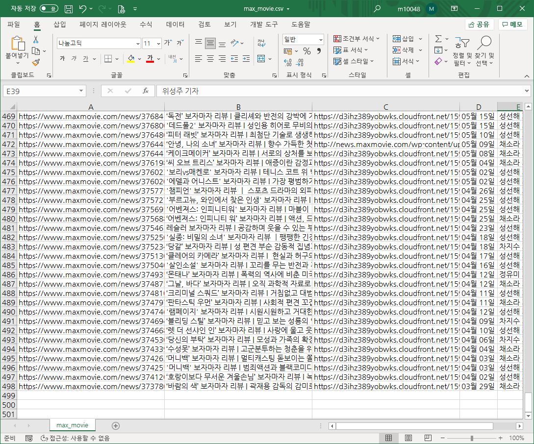 코드의 구조가 이해되시나요? 그럼 결과물인 max_movie.csv를 한번 볼까요?