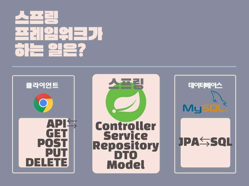 Repository: 데이터베이스(SQL DB)와 상응하는 클래스, 자바 안에서는 interface 형태로 구현하고 JpaRepository를 상속받아 사용한다.