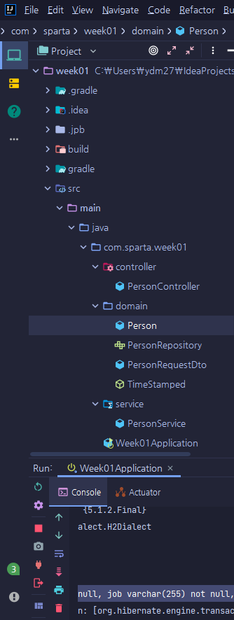 JPA: Java의 언어로 번역된 SQL 쿼리라고 생각하면 될 것 같다. 이를테면 H2(서버가 종료되면 데이터 역시 함께 휘발하는 간단한 SQL 도구)에 직접적으로 SQL문을 작성할 필요없이 리포지토리에 새로운 Person 인스턴스를 저장하면 INSERT INTO PERSON... 과 같은 SQL쿼리문으로 번역되어 실행, 해당 데이터가 데이터베이스에 저장된다.