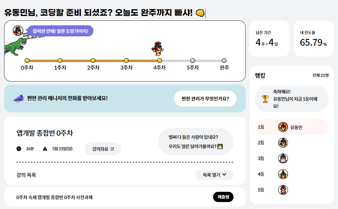 슬랙에서 4주차 5주차 내용에 대한 질문이 자주 올라오길래 다들 이렇게 진도가 빠른가 하고 있었는데