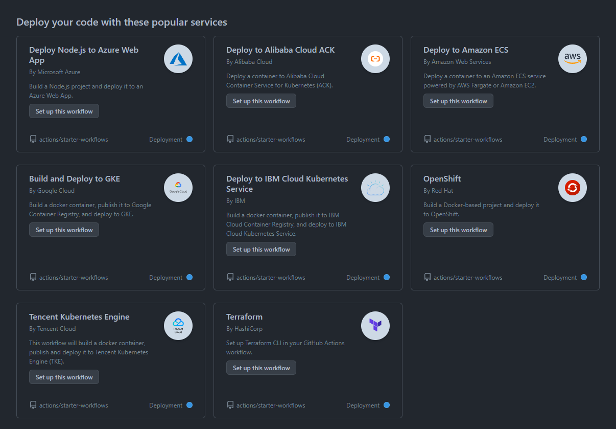 깃허브의 원격 리포지토리에는 생각보다 많은 보조기능이 있습니다. 이슈, 풀리퀘스트, 디스커션, 액션, 위키, 시큐리티 등등이요. 우리가 오늘 사용할 부분은 액션 탭입니다.