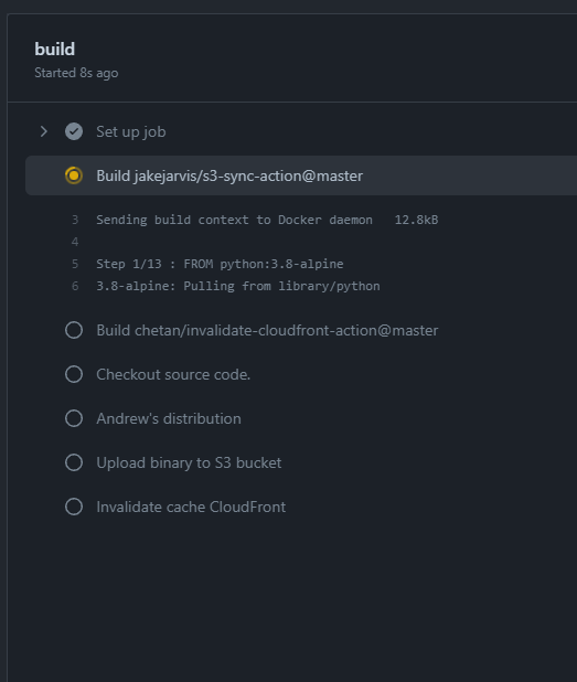 - name: Upload binary to S3 bucket 여기 줘야 하는 argument는 jakejarvis/s3-sync-action 직접 들어가보세요