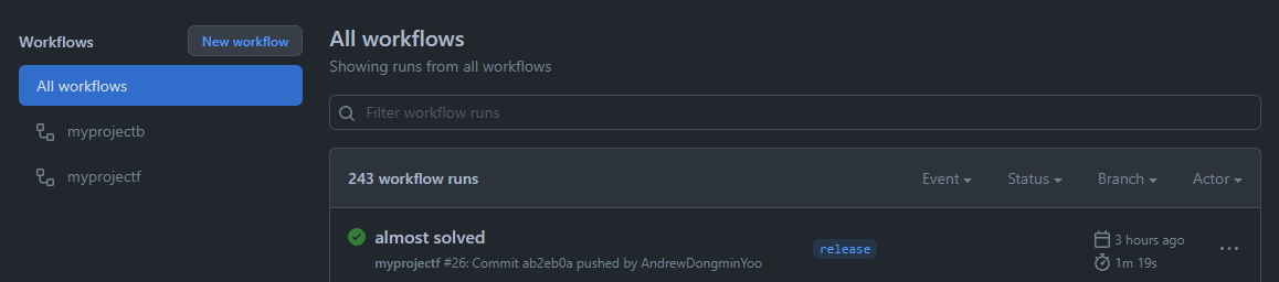 저는 이렇게 ElasticBeansTalk와 CloudFront를 각각 b와 f로 나눠뒀습니다. 저기 243개의 워크플로우 보이시나요...? 이 포스트는 저를 갈아 만든 포스팅입니다 x를 눌러 joy를 표하세요....