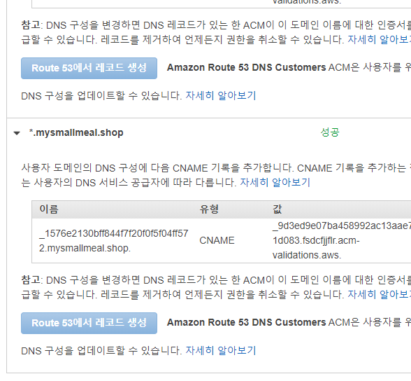 16. Route 53에서 레코드를 관리해주고 있기 때문에 따로 CNAME을 복사해줄 필요없이 알아서 전달이 되고 잠시 후에 검토가 승인될 것입니다. 잠깐 쉽니다.