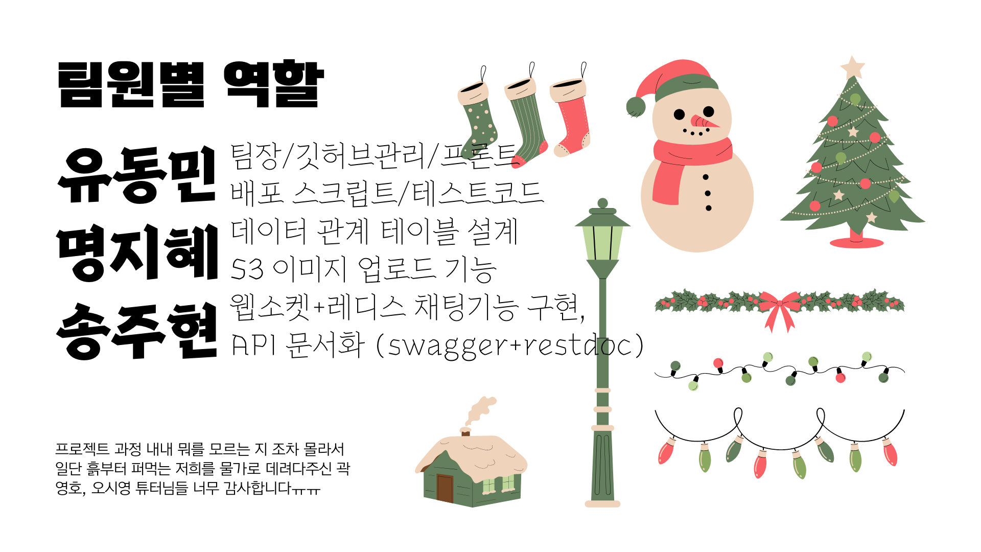 - 실시간 기능 위해 Spring websocket + SockJS, StompJS, Redis 사용