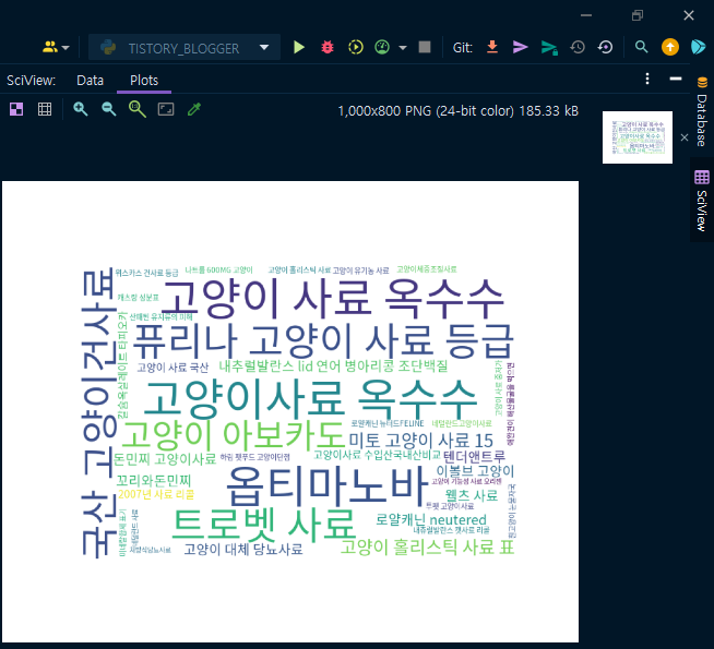 오우 훨씬 많은 단어가 나타나서 좀 정신없긴 하네요. 하지만 나쁘지 않은 것 같습니당 하하핳
